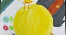 3才位になると、絵に興味をしめします。くしゃくしゃ描きなのですが、そういうものを大切にします。B紙を使って大きく描いてみよう。地面にらくがきするような感じですね。クレパスと絵の具を使います。上手に描くことは目的ではありません。のびのびと描けることと絵が好きになることが大切です。教えるのではなく、励ます姿勢こそ大切です。安心して描けることでイメージも膨らんでいきます。時にはお母さんと一緒がいいこともあります。出来上がったら「よくできたね」の励ましの言葉がその子の力になります。